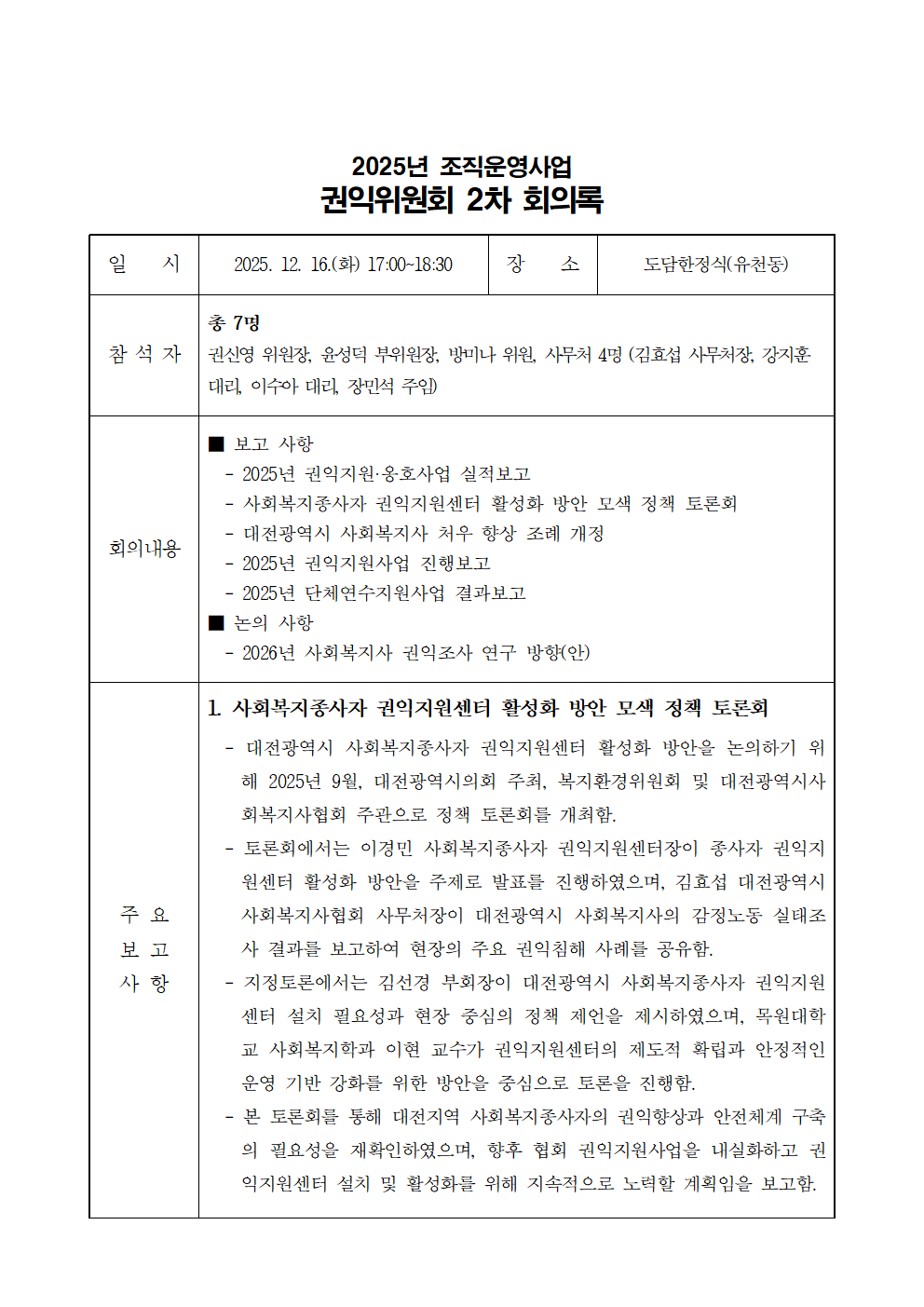2025년 제2차 권익위원회 결과보고