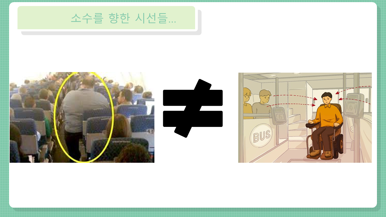 시선의 차이가 결국 사회 전반에 걸쳐 이용의 차별로 나타나는 것처럼요.