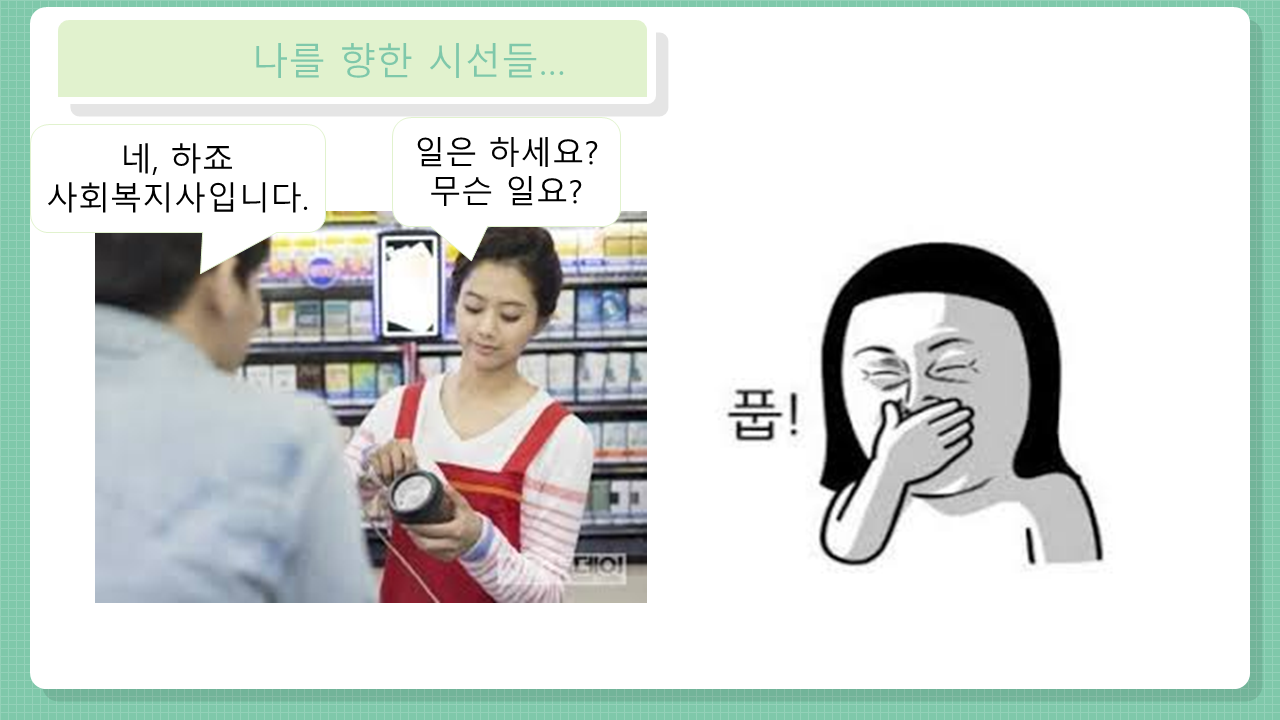 사회복지라고 답하자 입을 가리고 웃던 얼굴이 잊혀지지 않습니다.